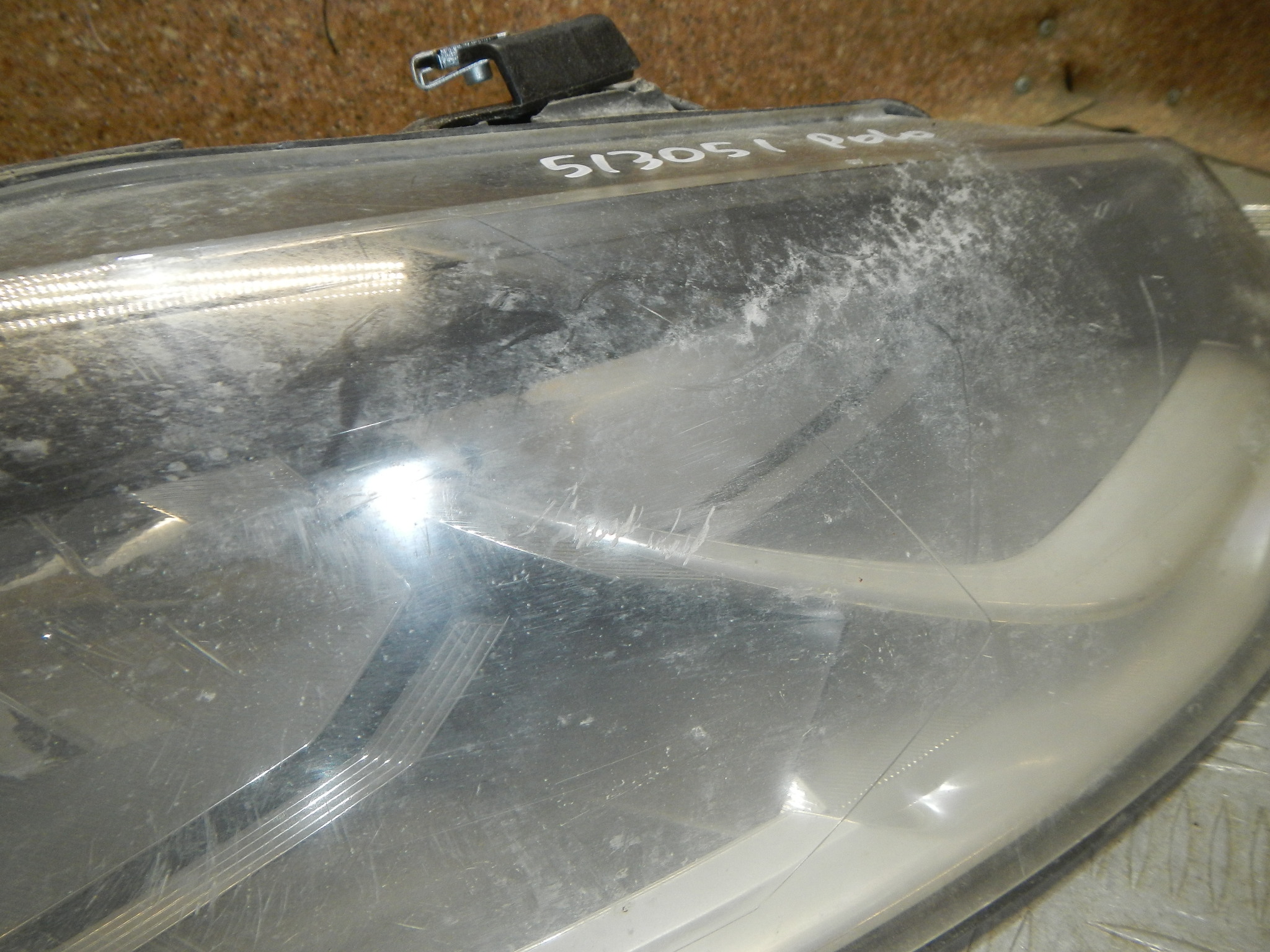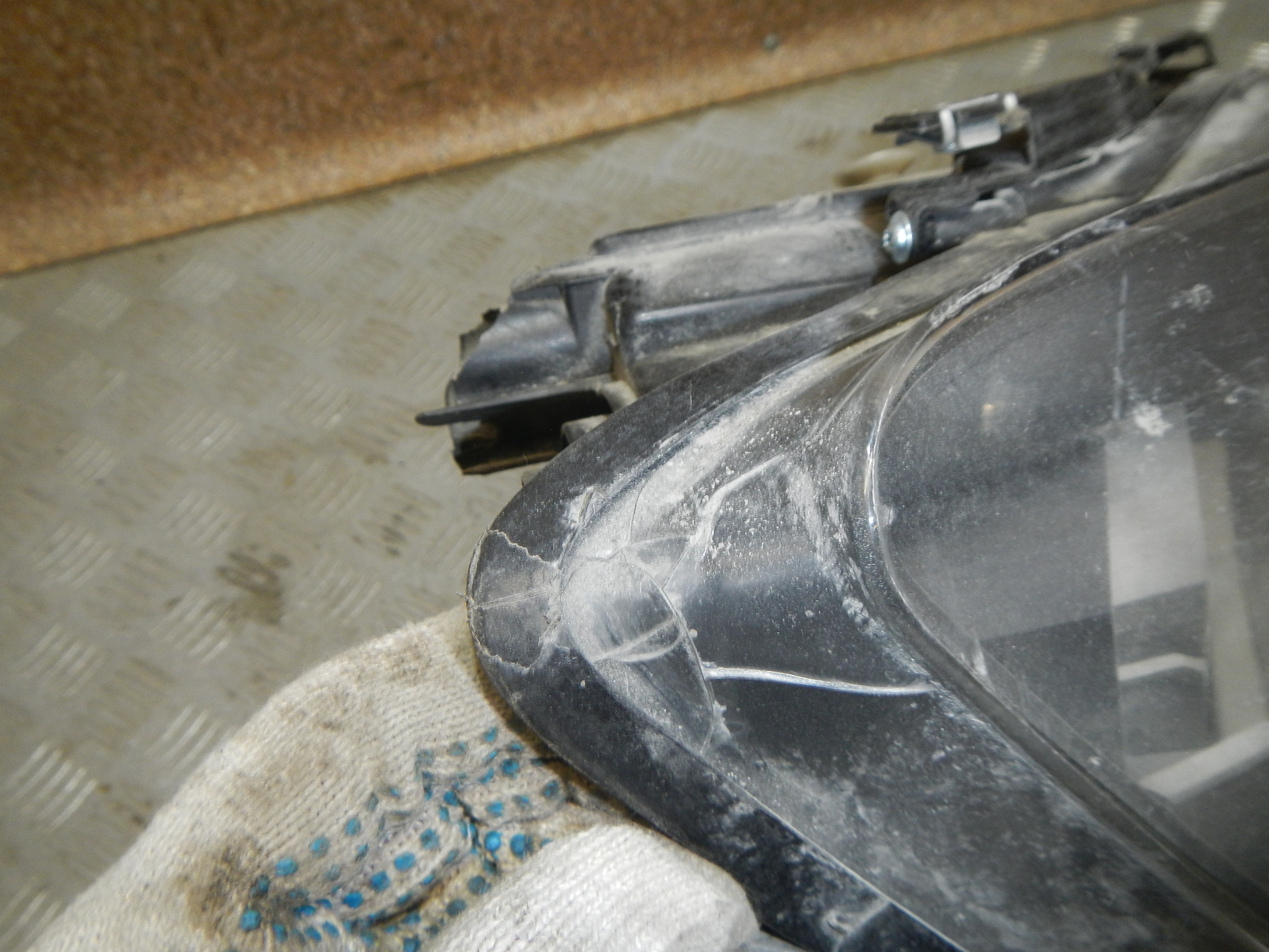 Царапины на стекле, грязь внутри, нет куска корпуса, установлены ремонтные крепления, трещина на стекле (не видно при установке).Партномер: 6C1941006B