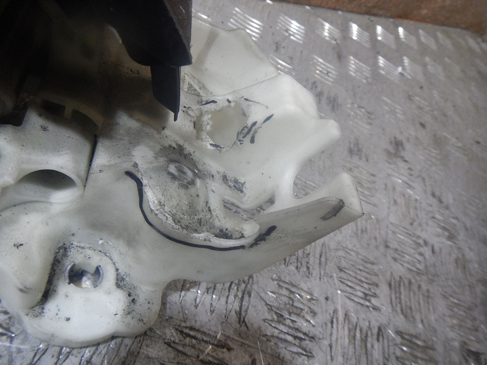Сломано крепление,накладка и рукоятка повреждены-оплавлены(следы пластика).